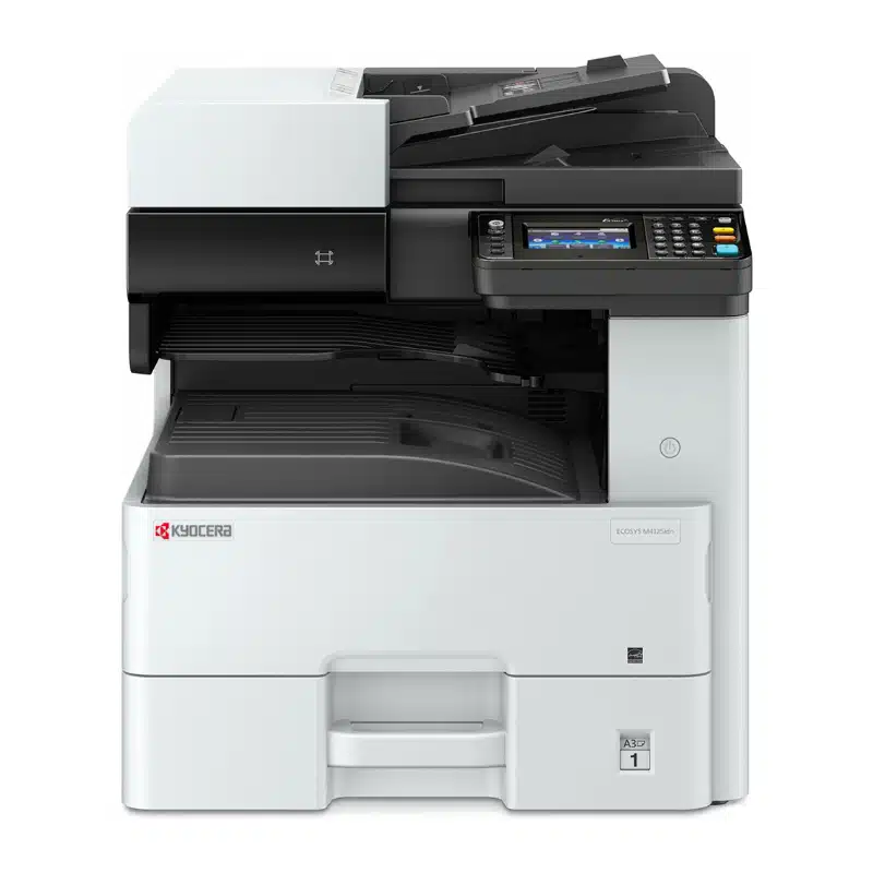 The Kyocera Ecosys M4125idn printer is a small office and workgroup powerhouse. It has quick print output 25 pages per minute and intuitive design. The enhanced touchscreen provides the user a simple layout to make choosing jobs a breeze.